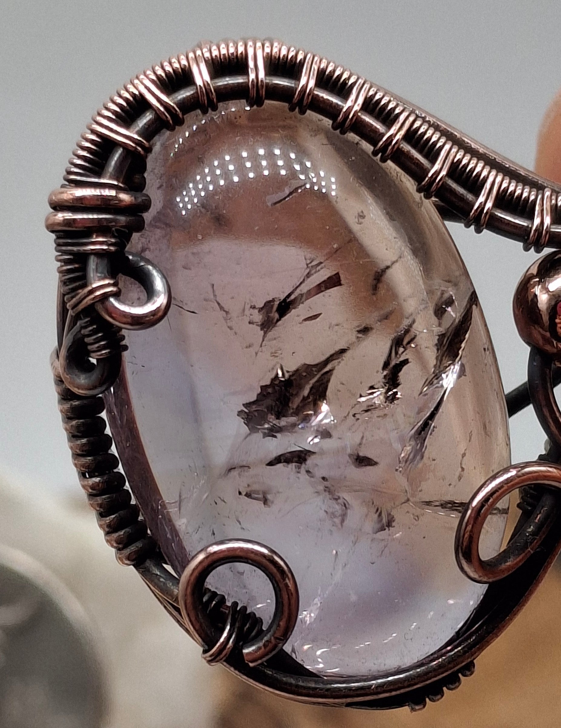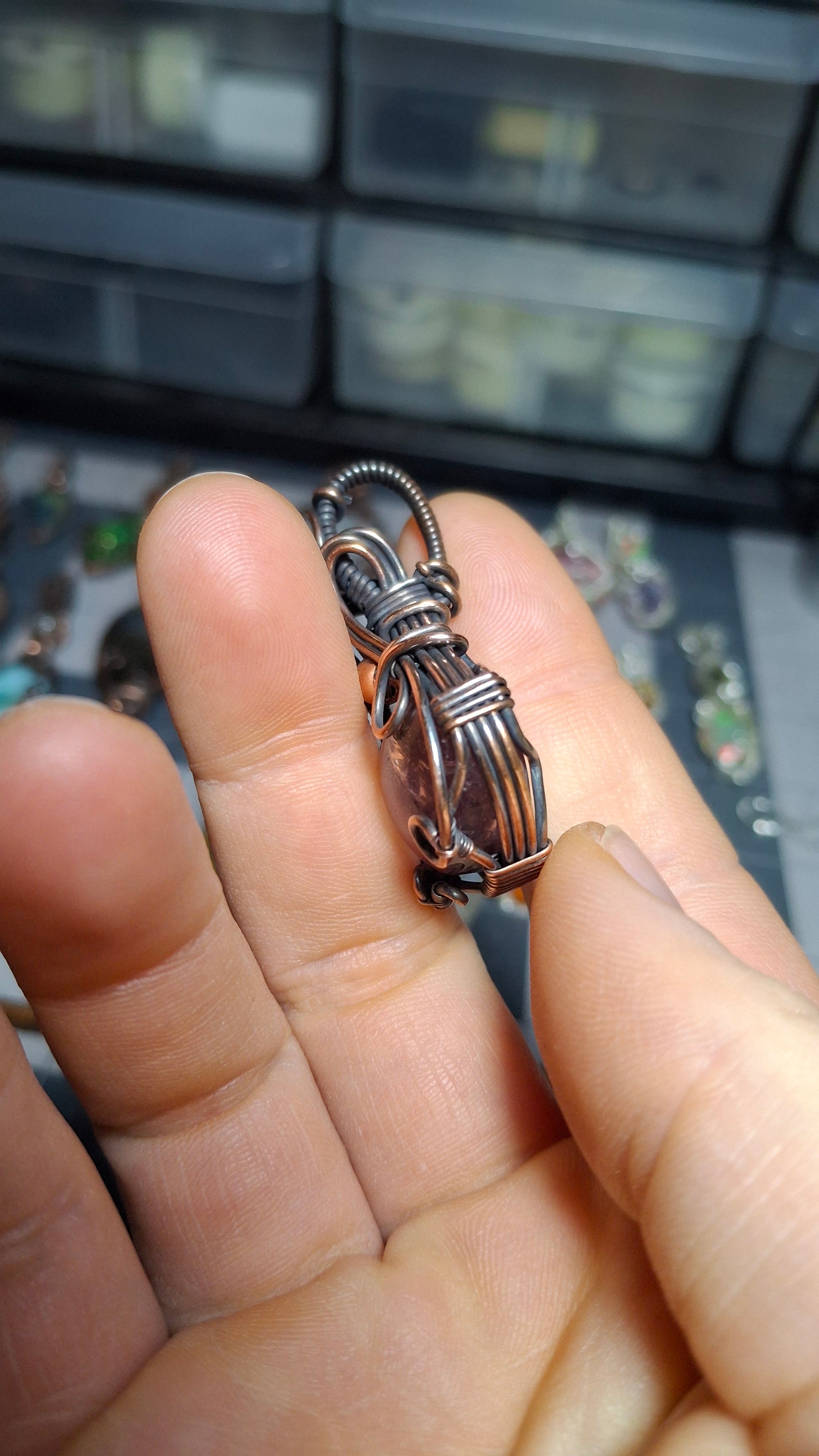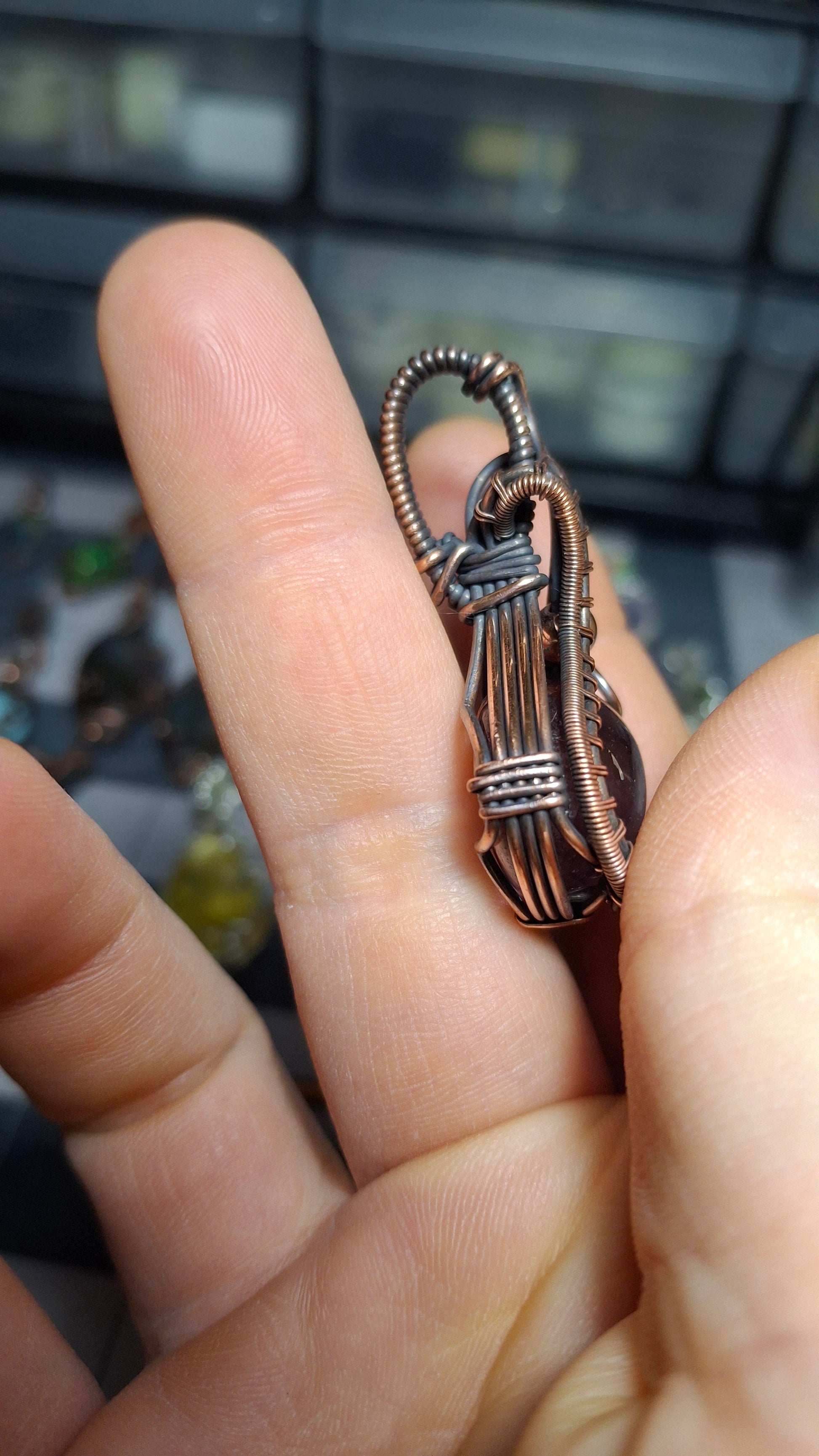 Ametrine in oxidized copper. Comes on 18in or 23in faux suede cord. Size reference in photos